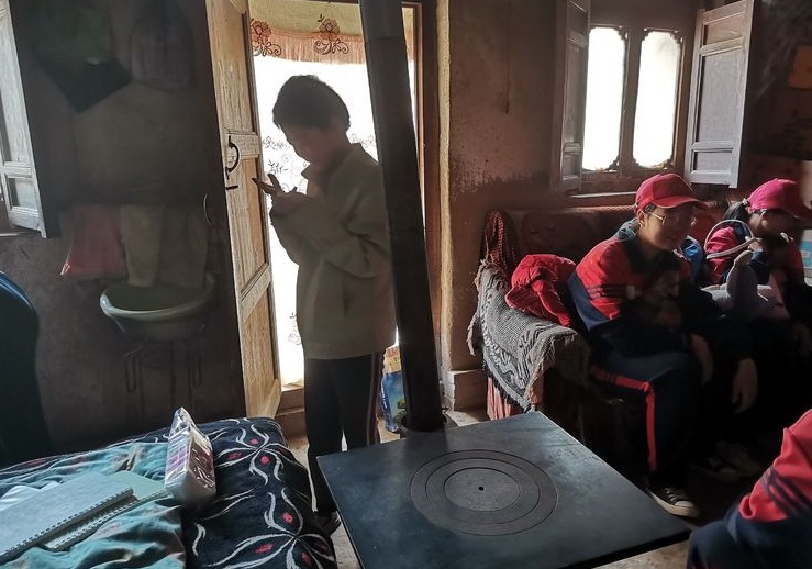 吃饭途中 热情的孩子们一直让我们给他们签名